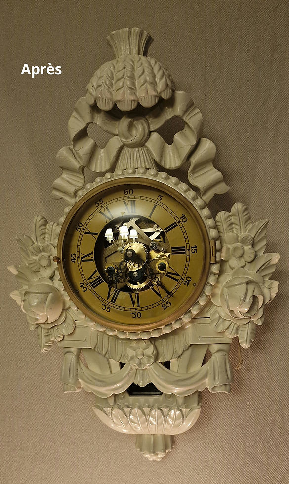 Voici une horloge type "Suèdoise" entièrement restaurée par mes soins.